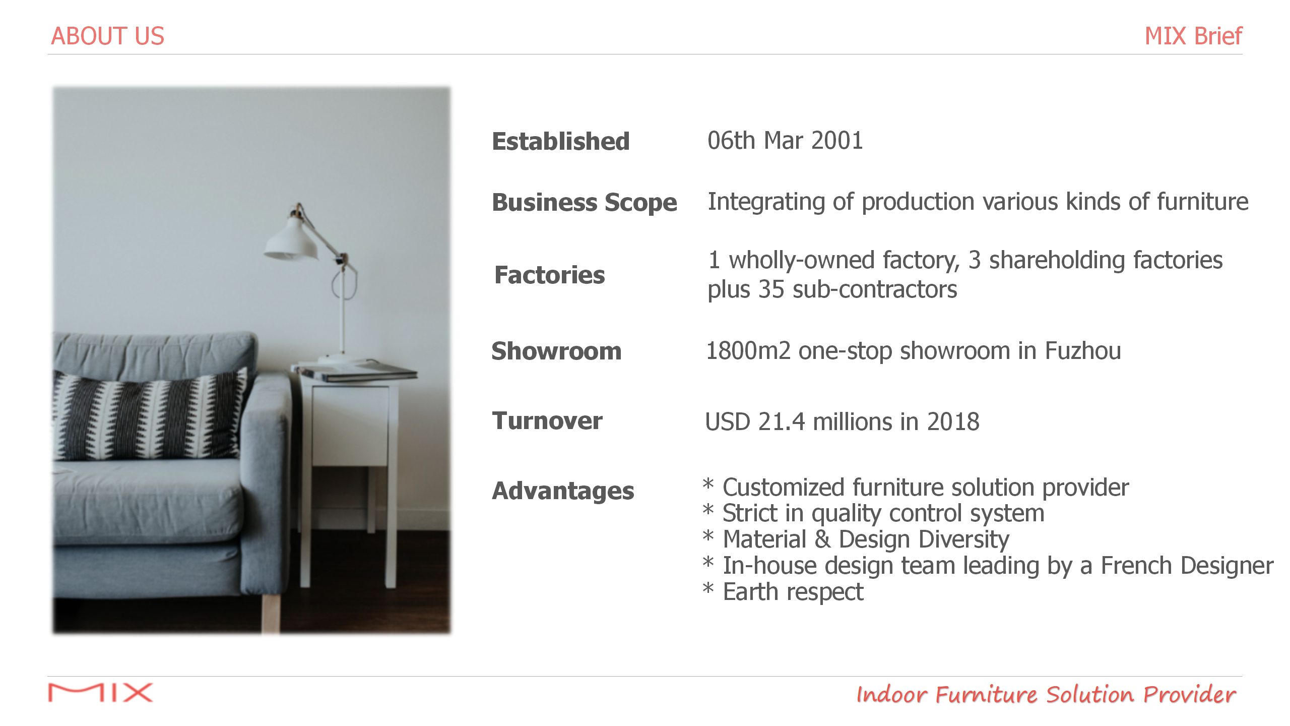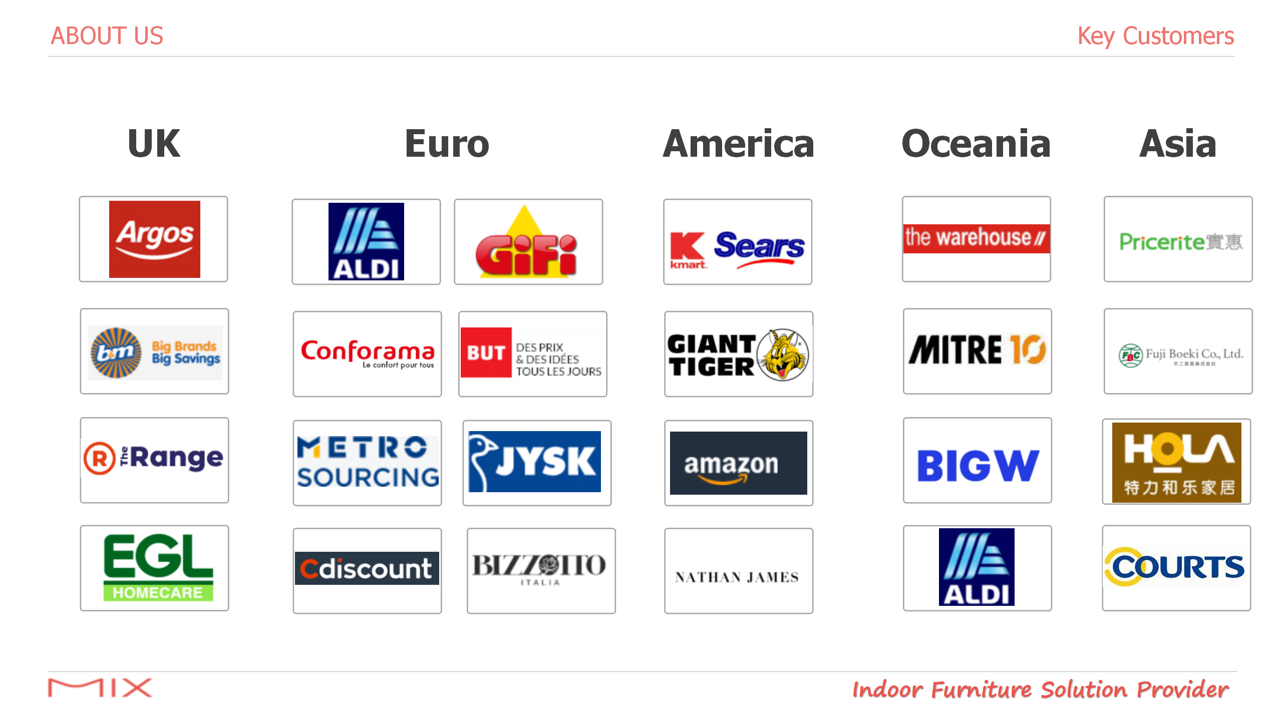 MILES 成立于2004年,是一家集家具产品的设计,生产,销售于一体的综合性企业。拥有先进的生产设备,过硬的生产技术,成熟的管理团队,在业内凭借超前的开发设计能力引领家具市场的潮流,深受客户的喜爱与信任。产品畅销国内外,与众多知名的商超、电商维持长期稳定良好的合作关系。