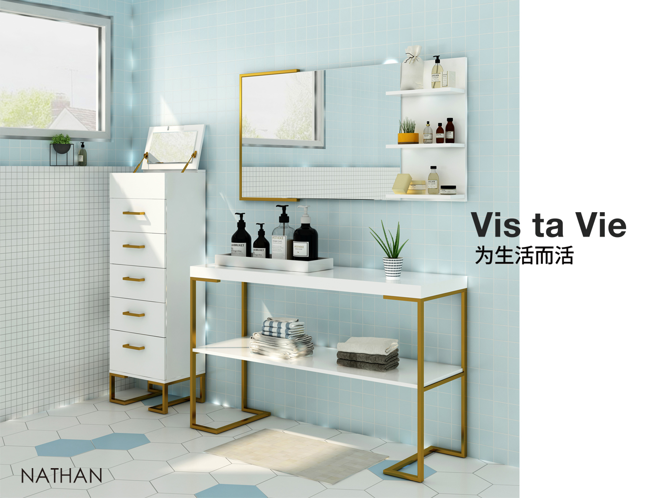 生活需要仪式感,用身边的精致事物将你的生活注入活力。 镀金的圆环把手,手感细腻,把手轻轻坠落的那一刻,清脆悦耳。 镀金的金属腿框架,甚至精心搭配镀金边框的浴室镜。 金与白,构成了最典雅的颜色碰撞。 缓缓翻开装有金色阻尼的镜子,镜子里看到的, 只是那个追求精致生活的你。