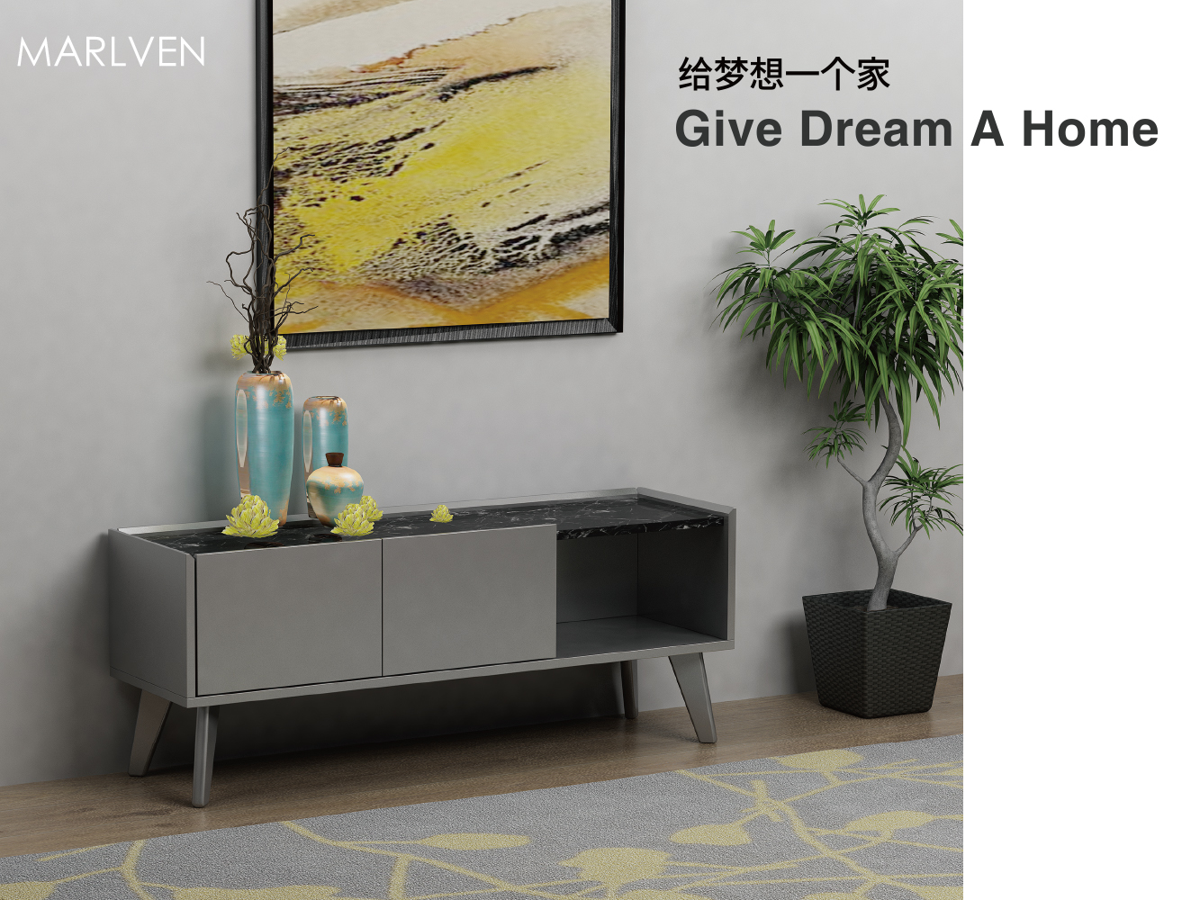 客厅家具是整个家庭的颜值担当,他是客人们步入门庭第一眼所见。 因此,我们需要一套撑的起场面和平衡空间的客厅家具。 Marlven系列简约但不简单,设计有心思。 柜身四周的面板稍稍凸起,圈成一个小“维栏”,营造心理安全感,防止小物品滑落。 严丝合缝的设计,不仅彰显立体感,也不容易进灰尘。 黑色大理石台面,低调奢华,大气从容。 我们特意选用一个基础色-灰色,这种颜色很容易与装修风格和其他软装协调, 视觉上让人有一种冷静,放松感。 拥有大空间的储物功能,满足基本收纳功能。 让你所有的媒体设备和杂物都