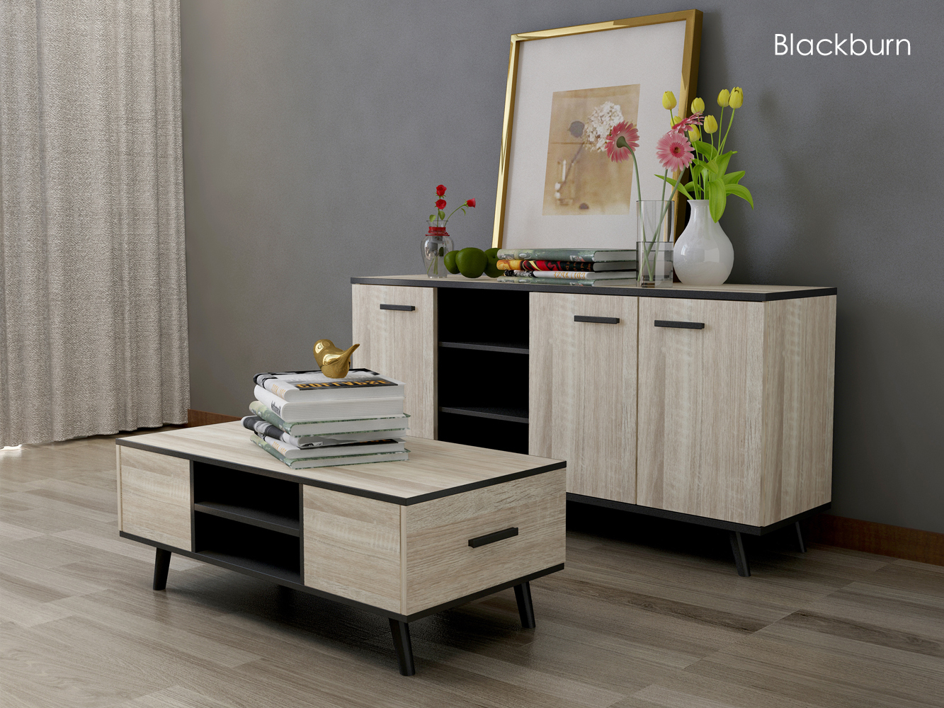 Blackburn可以全屋搭配。有科学的收纳布局,大容量,多规格,满足不同收纳需求。 面板规整平滑,利落的黑色线条把轮廓勾勒的干净清爽。 天然木纹色给人一种纯粹自然的美感。 常规的柜身,但是搭配中世纪风格的木腿。又有不一样的别样心思。